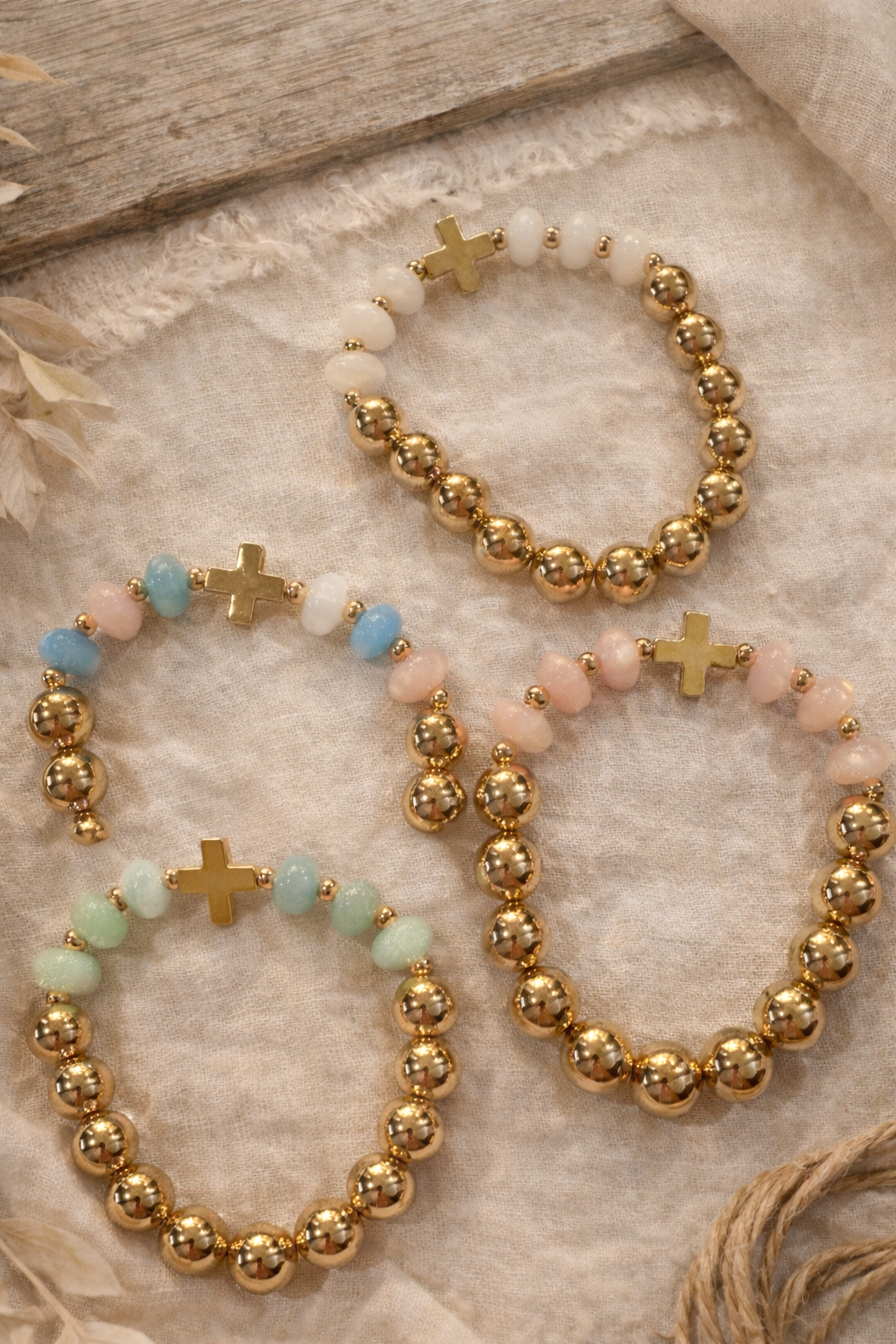 Meet your new arm candy: the Candy Beads Cross Bracelet! With a stretchy band that's as flexible as your Friday night plans, it features a dazzling cross nestled among vibrant candy beads. Wear it to sweeten up any outfit (or your day—no legal guarantees). Perfect for those who like their style a bit playful and their accessories a tad divine!