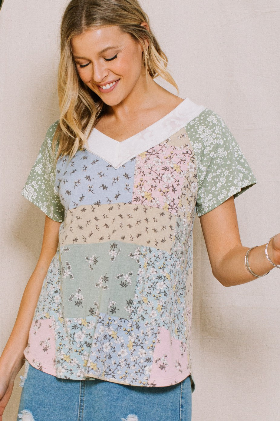 Elevate your casual wardrobe with this charming French terry knit top that blends comfort with personality. The relaxed short sleeves and flattering V-neckline create an effortlessly chic silhouette, while bold floral and leopard print details add a fun, fashion-forward twist. Crafted from soft, breathable fabric, it's the perfect piece for mixing prints and expressing your unique style. Dress it up or down—this versatile top is ready for anything.