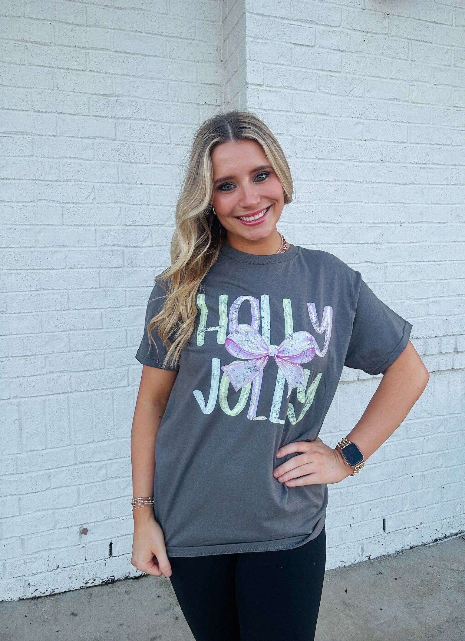 Get ready to sleigh the holiday season in this Holly Jolly Tee! Comes in both grey and blue! This festive graphic tee brings all the Christmas cheer with a fun, lighthearted design that'll have everyone grinning. The soft fabric is your new go-to for holiday parties, family gatherings, or just embracing your inner elf. Cozy, comfortable, and bursting with seasonal spirit—because the best gift is looking merry and bright!
